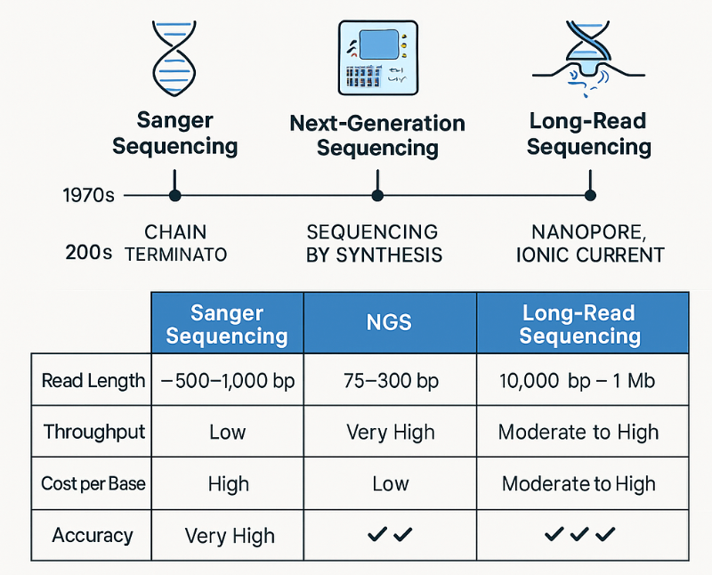 Let’s understand the key differences between the major DNA sequencing techniques — their principles, workflows, strengths, and limitations.